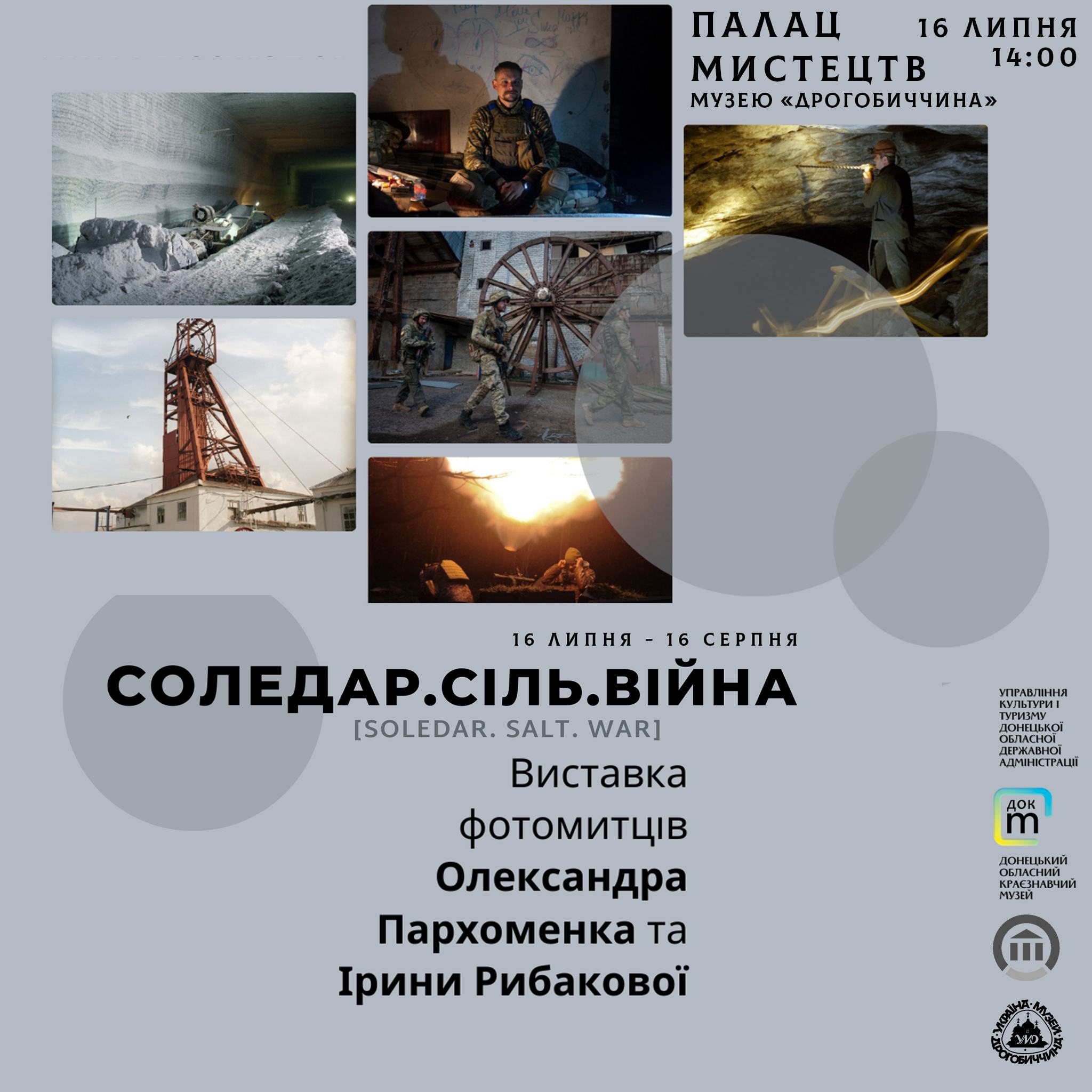 Запрошуємо містян та гостей Дрогобича на відкриття нового виставкового проєкту Донецького обласного краєзнавчого музею «Соледар. Сіль. Війна» у Палаці мистецтв 16 липня о 14:00.
