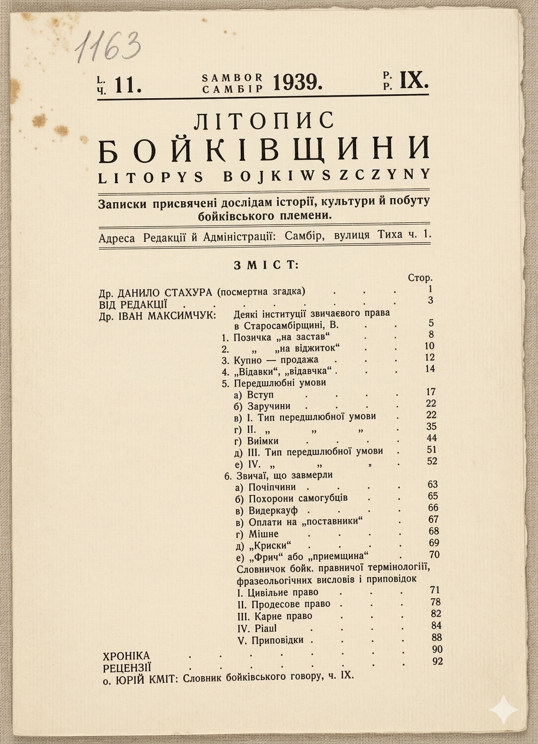 Дослідження Івана Максимчука (1888-1965) бойківського звичаєвого права кін. ХІХ ст. – поч. ХХ ст.