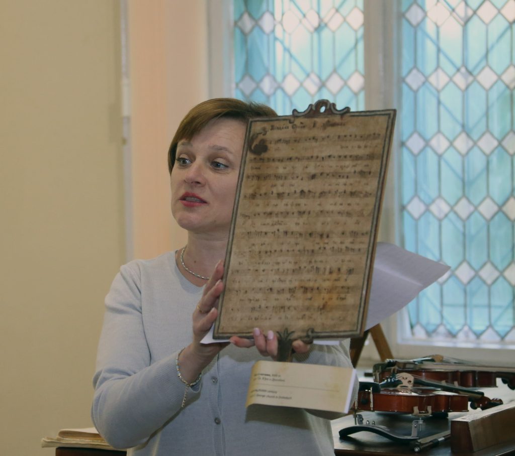 Своєрідним дарунком з нагоди Міжнародного дня музики для наших партнерів стала розвідка Оксани Стапʼяк (наукової працівниці музею) про цікаву пам’ятку музичної культури – рукописний нотний запис церковного співу XVIII століття, що зберігається у нашій збірці. Це дерев’яна таблиця з нотами і словами на тему «Акафіст Христу». Особливість її в тому, що вона написана старослов’янською мовою із нотними знаками спеціально для богослужіння у церкві Святого Юра. Сама таблиця виготовлена у стилі рококо і є справжнім витвором мистецтва, а не лише артефактом.