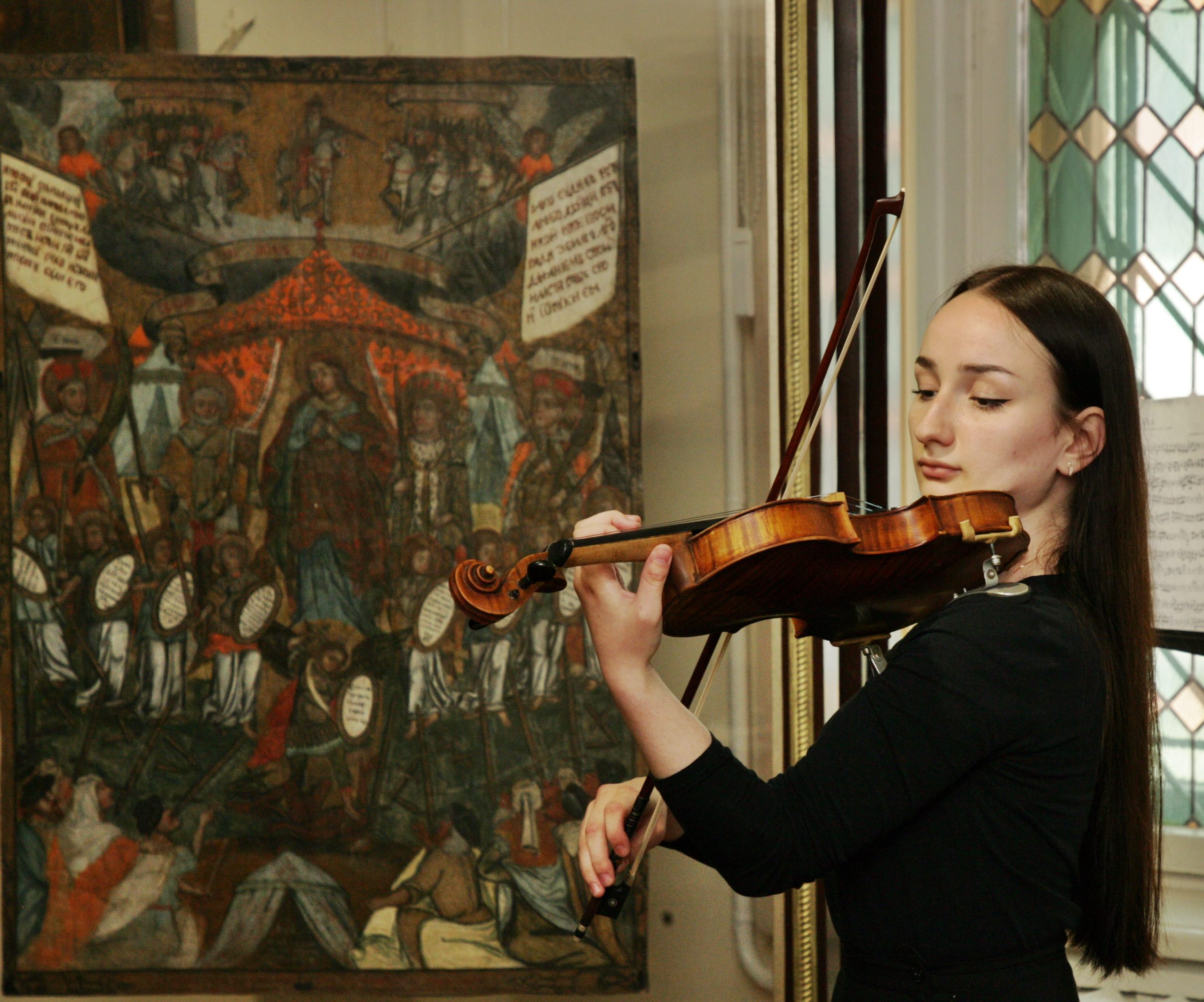 Студентка IV курсу відділу оркестрових струнних інструментів Дрогобицького музичного фахового коледжу імені Василя Барвінського Філомена Прилуцька зачарувала присутніх віртуозною грою на улюбленому інструменті. Скрипкові мелодії творів відомих композиторів Йоганна Себастіяна Баха, Вольфганга Моцарта, Каміля Сен-Санса, Мануеля де Фалья та Мирослава Скорика звучали по-особливому ніжно у виконанні талановитої студентки.