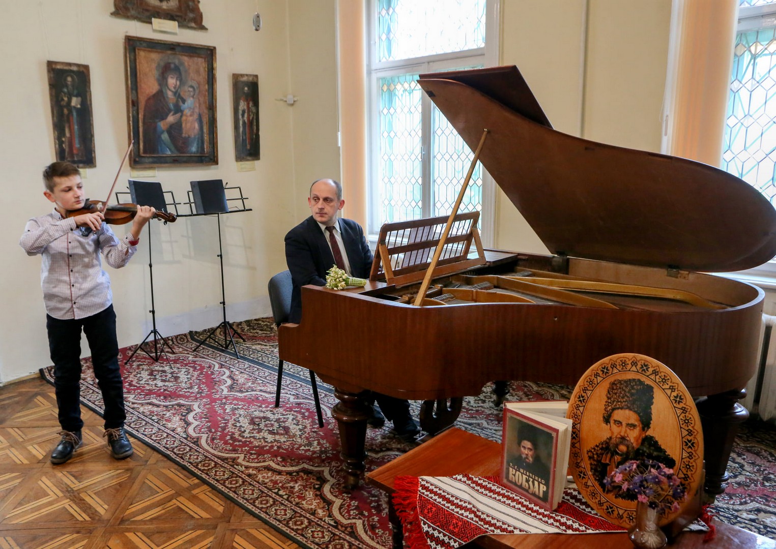 19 березня в Галереї сакрального мистецтва відбулося справжнє святкове дійство, присвячене вшануванню пам’яті великого Кобзаря. Тематичний концерт «Світ музики у творчості Т. Шевченка» влаштували викладачі та вихованці дрогобицької дитячої музичної школи №1, яких об’єднала любов до творчості нашого геніального поета. Пристрасне слово Кобзаря підсилене музичним супроводом та щирість виконавців створили у музеї атмосферу духовного піднесення.