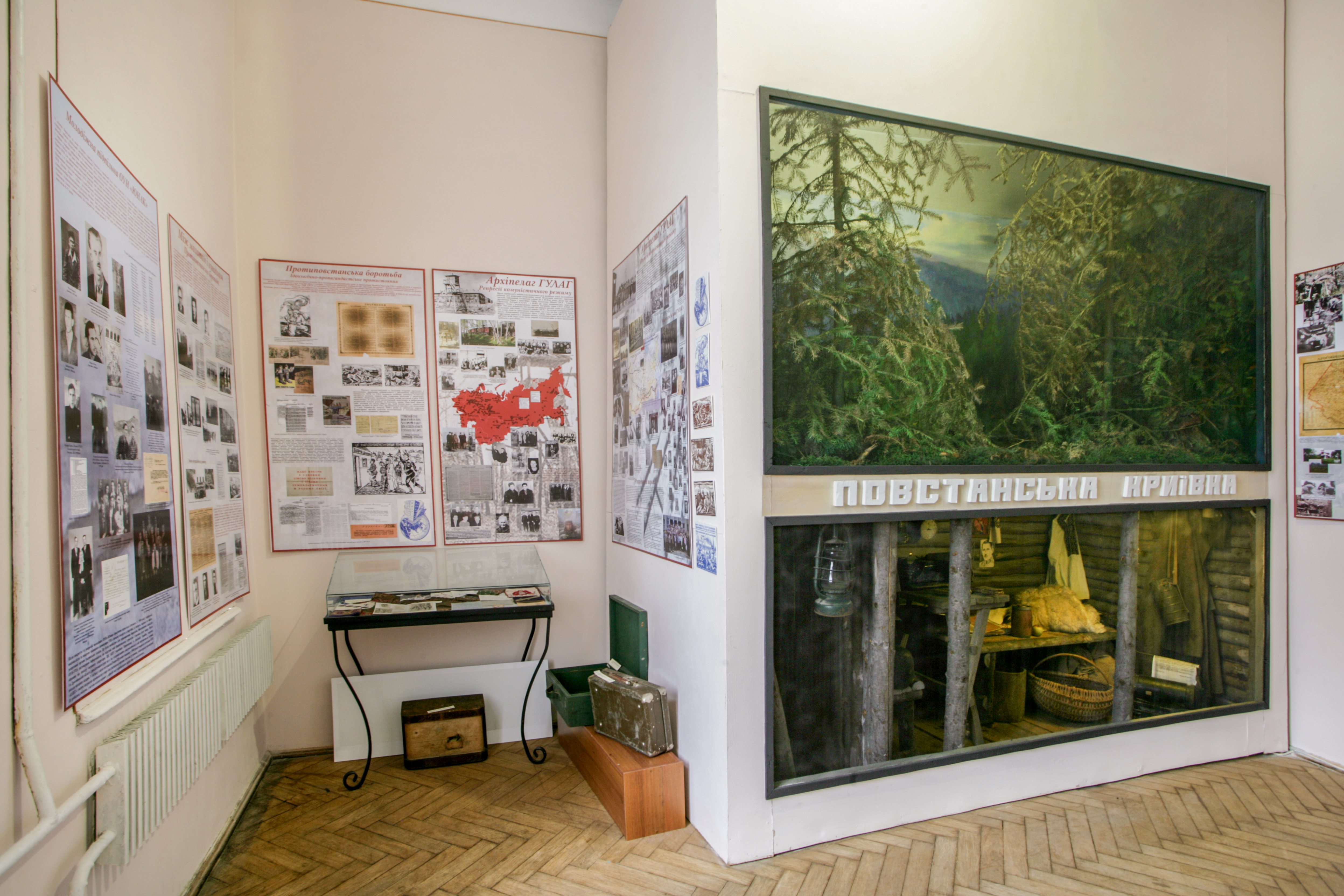 • Група експонатів висвітлює боротьбу за незалежність і становлення Української держави, діяльність ОУН-УПА. Експозиційний розділ про діяльність УПА, окрім речових та фотодокументальних матеріалів, доповнює діорама-макет «Повстанська криївка», створена на основі спогадів Командира УПА Степана Стебельського (псевдо «Хрін») «Зимою в бункрі».