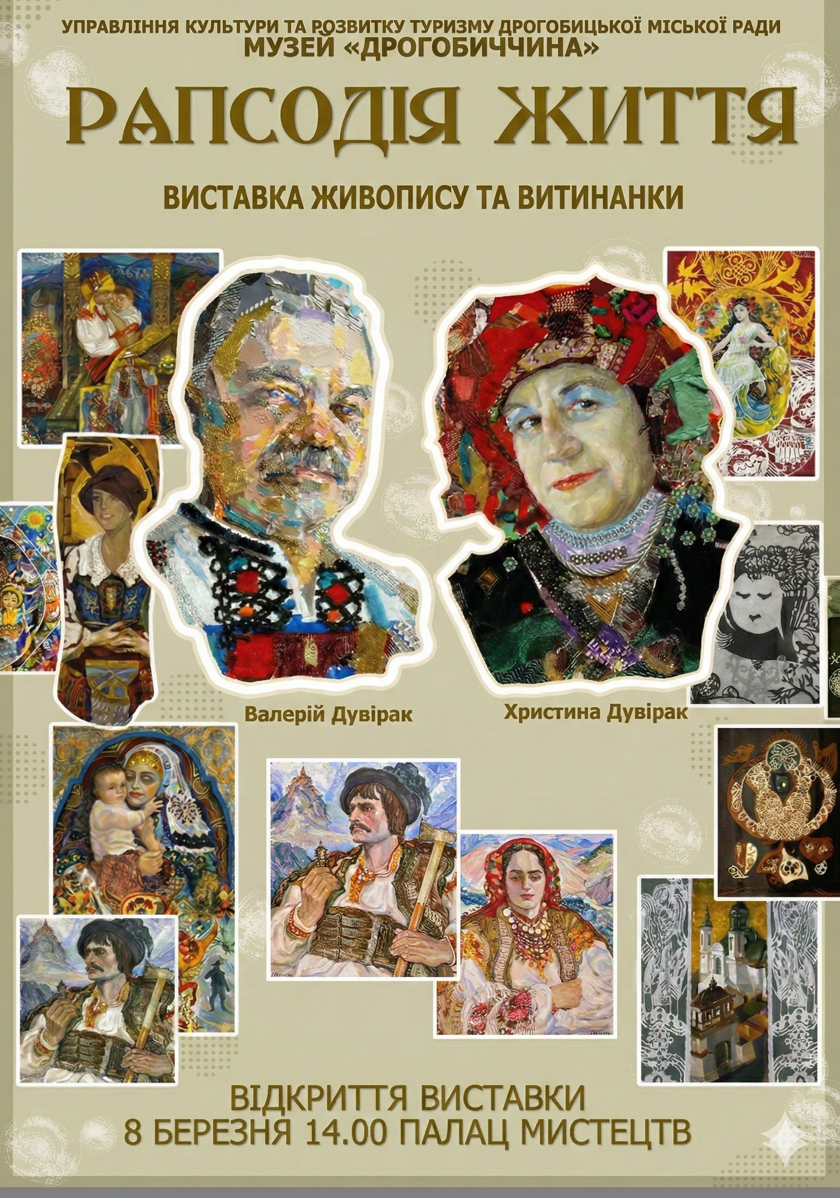 У Палаці мистецтв презентували виставку живопису та витинанок творчого тандему мистців з Франківщини – Валерія та Христини Дувіраків. Це понад 70 різнопланових за жанром, стилем та технікою робіт, які вражають глибиною образів, ...