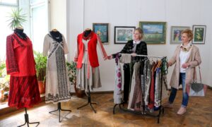 Прекрасним доповненням до вернісажу Володимира Сачка була виставка дизайнерських робіт народної майстрині Оксани Сокол. Це народні строї в техніці вибійки та вишивки, які сьогодні користуються популярністю не тільки в Україні, але й за кордоном. Сьогодні мисткиня готується до презентації своєї колекції в Туреччині та США.