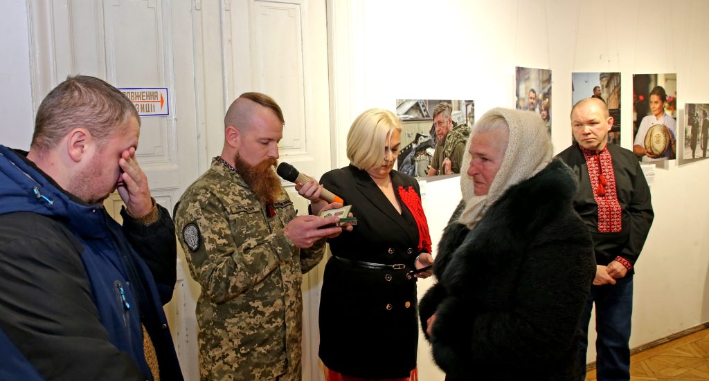 Завідувачка відділу європейського мистецтва Леся Хомич привітала гостей та представила авторів фотопроєкту. Наталія Буряк – ідейниця, координаторка волонтерського об’єднання “Опір Самбір”. Микола Буряк – фотограф, волонтер.